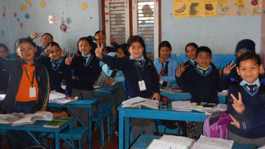 Ici l'école commence à 9h et se termine à 15h. Tous les matins, les enfants se rassemblent dans la cour de récréation pour un temps de prière (école privée) et pour faire un point sur l'actualité. Dans les lycées, les cours commencent souvent tôt : 5h et se terminent à 12H, car les népalais considèrent qu'ils sont plus performants le matin.