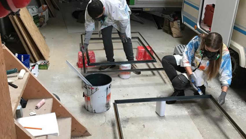 Lise et Killian ont réalisés la peinture des cadres de la caravane.