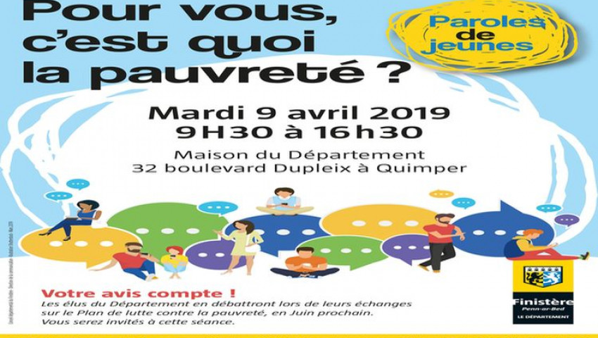 Rendez-vous le mardi 09 avril de 9h30 à 16h30 à la Maison du Département à Quimper, pour s'exprimer et débattre ensemble sur le thème de la Pauvreté.